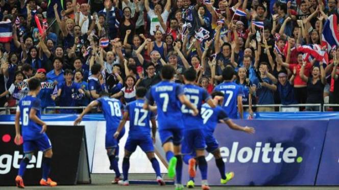 Laga Thailand versus Myanmar di National Stadium, Kallang, Singapura, Senin (15/6/2015), tak menghasilkan gol di babak pertama. Kebuntuan baru terpecahkan pada menit ke-54 saat Tanaboon Kesarat membawa Thailand memimpin 1-0.