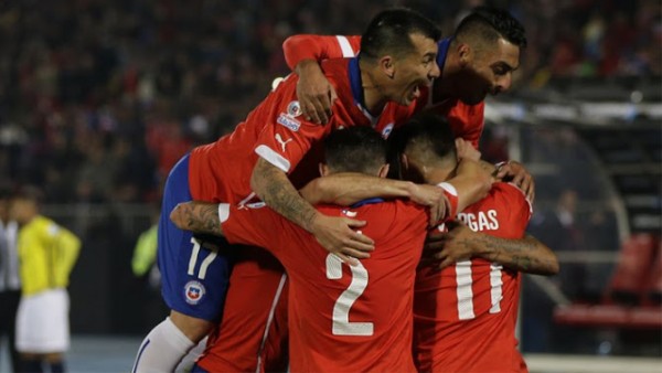 Tiga menit menjelang babak pertama berakhir, Cile baru bisa menyamakan kedudukan. Kali ini umpan silang Arturo Vidal diselesaikan oleh sundulan Eduardo Vargas yang disambut sorakan suporter Cile di Stadion Nasional. Skor 2-2 bertahan hingga babak pertama berakhir.
