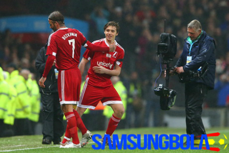 Beckham menjadi kapten tim Britania Raya dan Irlandia pada laga amal 'UNICEF Match for Children' di Old Trafford, Sabtu (14/11/2015). Tim ini dilatih oleh mantan manajer Manchester United, Sir Alex Ferguson, dan diperkuat oleh Ryan Giggs, Paul Scholes, Nicky Butt, Darren Fletcher, Phil Neville, John Terry, Jamie Carragher, Sol Campbell, Michael Owen, dan lain-lain. Putra sulung Beckham, Brooklyn, juga masuk tim ini.
