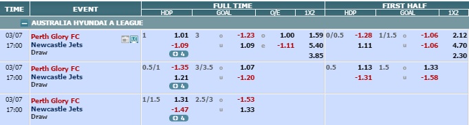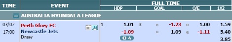 di sampin angak voor 1 nya ada pasaran key 1.01 yaitu jika memilih glory fc akan mendapatkan key 1.01.melaikan jika anda memilih newcastle jets -1.09 akan di kenai key -1.09.