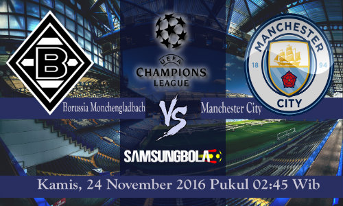 Tim raksasa Manchester City akan berjuang merebut satu tiket ke fase knockout Liga Champions. Untuk mencapai ambisi mereka, Skuat Guardiola harus berhasil meraih kemenangan saat bertandang ke markas Borussia Monchengladbach pada hari Kamis, Tanggal 24/11-2016, Pukul 02:45 Waktu Indonesia Barat.