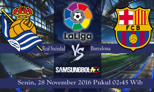 Barcelona akan menghadapi pertandingan sulit saat menghadapi Real Sociedad pada pertemuan lanjutan La Liga yang akan berlangsung di Anoeta, Pada hari senin, Tanggal 28/11-2016 pukul 02:45 Waktu Indonesia Barat.