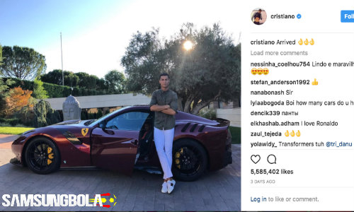 Ronaldo kini berpose di samping mobil Ferrarinya itu dan mengunggahnya ke instagram dengan caption 'Arrived'.