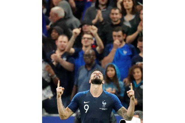 Bomber Chelsea itu pamer ketajaman saat uji coba kontra Republik Irlandia yang sekaligus membuatnya mencatat sejarah. Sepanjang musim 2017/2018 Giroud mungkin sulit menjebol gawang lawan ketika membela Chelsea. Nyatanya, dia hanya mencetak tujuh gol dari 29 partai Liga Primer, atau 12 gol dari 44 laga secara keseluruhan.