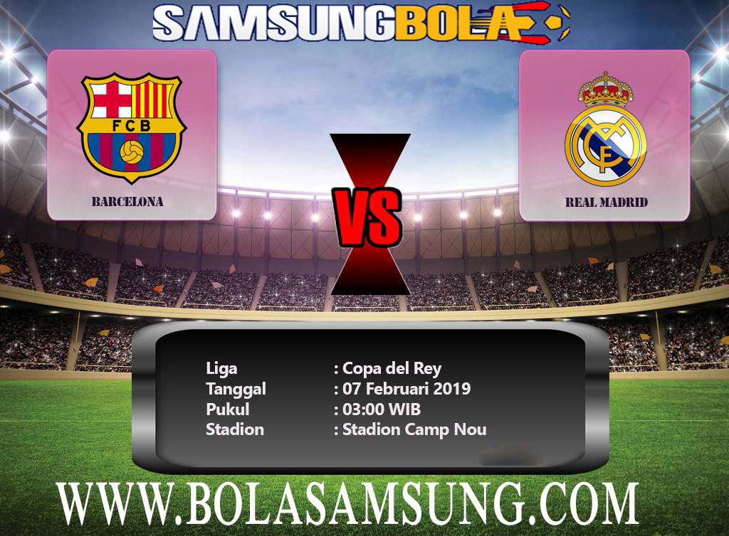 - Prediksi Skor Barcelona Vs Real Madrid 07 Februari 2019 Pada laga pertandingan Copa Del Rey yang akan mempertandingkan laga terbaik antara Barcelona Vs Real Madrid, akan diselenggarakan di Camp Nou (Barcelona) dan berlangsung pada tanggal 07 Februari 2019 pukul 03.00 WIB.