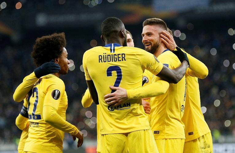 SamsungBola - Chelsea berpesta lima gol ke gawang tuan rumah Dynamo Kiev dalam laga leg kedua babak 16 besar Liga Europa 2018-19 yang digelar di Stadion NSK Olimpiyskiy, Jumat (15/3) dini hari WIB.