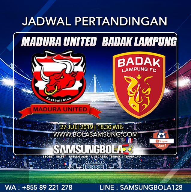 Samsungbola - Madura United akan bertanding melawan Badak Lampung pada lanjutan Sophee Liga 1 Indonesia yang berlangsung di Gelora Madura Ratu Pamelingan Stadium , Pamekasan pada Jumat (27/7/2019), pukul 18.30 WIB yang disiarkan melalui link live streaming dan INDOSIAR.