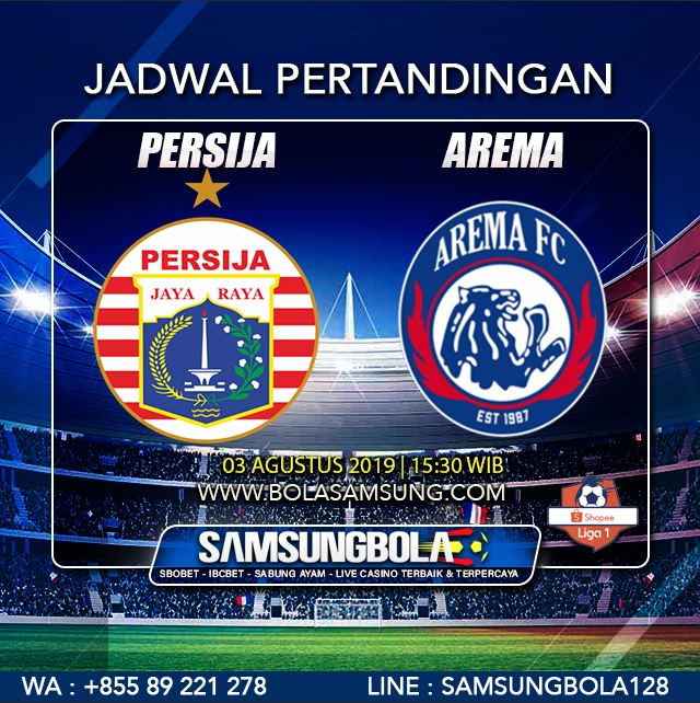 Samsungbola - Prediksi Bola Persija Vs Arema 03 Agustus 2019 Kedua klub ini akan bertemu dalam pertandingan Liga 1 Indonesia di Stadion Utama Gelora Bung Karno (Indonesia), pertandingan ini akan di laksanakan pada 03 Agustus 2019 pukul 15:30 WIB.