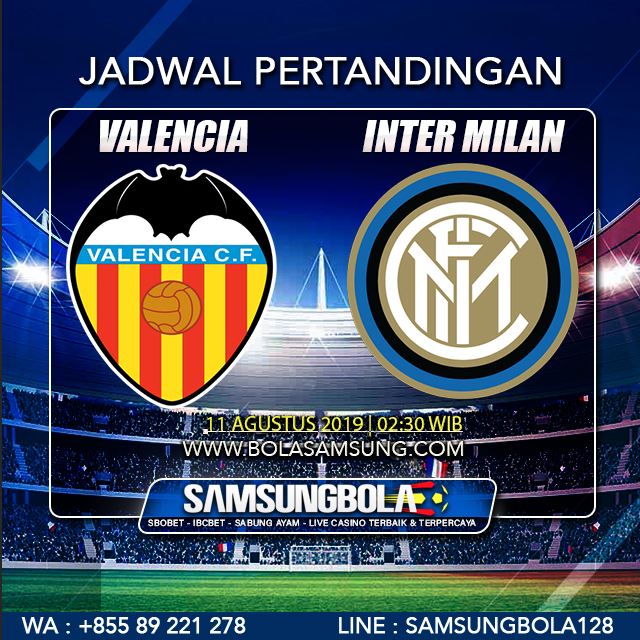 Samsungbola - Prediksi Bola Valencia Vs Inter Milan 11 Agustus 2019, Pada hari Minggu, 11 Agustus 2019 akan diadakan pertandingan Liga Club Friendlies yang akan mempertemukan kedua tim antara Valencia Vs Inter Milan yang nantinya akan dilaksanakan di Stadion Mestalla, Spanyol pada pukul 02:30 WIB.