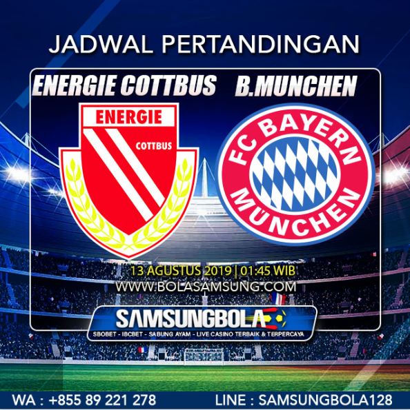 Samsungbola - Prediksi Energie Cottbus vs Bayern Munchen 13 Agustus 2019 Pada hari Selasa, 13 Agustus 2019 pukul 01:45 waktu indonesia barat akan di adakan laga pertandingan Liga DFB Pokal antara Energie Cottbus vs Bayern Munchen. Pertandingan ini nantinya akan di laksanakan di Stadion der Freundschaft.
