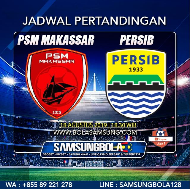 Samsungbola - Prediksi skor psm makassar vs persib bandung 18 agustus 2019_hai selamat datang kembali lagi dengan saya yang kali ini akan membahas tuntas tentang pertandingan super big match yang akan mempertemukan tim kuat liga 1 yaitu antara psm makasar vs persib bandung pertandingan seru yang kali ini yang akan di gelar di stadion andi mattalatta pada 18 agustus 2019 melihat dari lima laga terakhir yang dimiliki tim psm makassar meraih 2kali kemenangan 2 kali kekalahan dan 1 hasil imbang yang kini sedang berada di urutan ke 10 di klasmen sementara liga 1 indonesia..