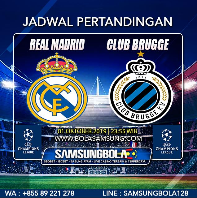 Samsungbola - Prediksi Real Madrid vs Club Brugge 1 Oktober 2019 Pada hari Selasa, 1 Oktober 2019 pukul 23:55 waktu indonesia barat akan di adakan laga pertandingan Liga UEFA Champions League antara Real Madrid vs Club Brugge. Pertandingan ini nantinya akan di laksanakan di Stadion Santiago Bernabeu.