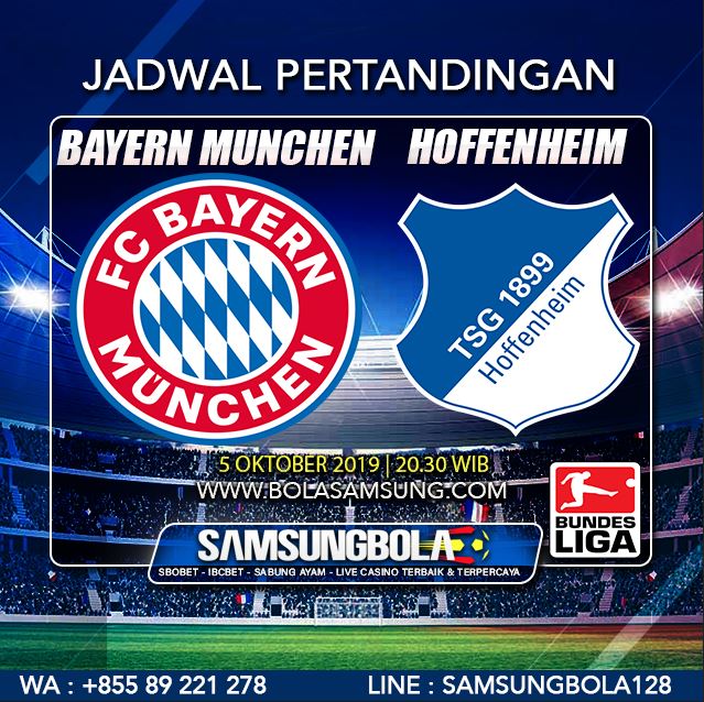 Samsungbola - Prediksi Bayern Munchen vs Hoffenheim 5 Oktober 2019 Pada hari Sabtu, 5 Oktober 2019 pukul 20:30 waktu indonesia barat akan di adakan laga pertandingan Liga Bundesliga antara Bayern Munchen vs Hoffenheim. Pertandingan ini nantinya akan di laksanakan di Stadion Allianz Arena.