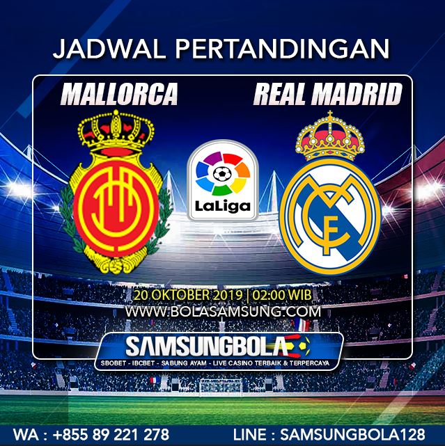 Samsungbola - Prediksi Mallorca vs Real Madrid 20 Oktober 2019 Pada hari Minggu, 20 Oktober 2019 pukul 02:00 waktu indonesia barat akan di adakan laga pertandingan Liga Spanyol antara Mallorca vs Real Madrid. Pertandingan ini nantinya akan di laksanakan di Stadion Iberostar.