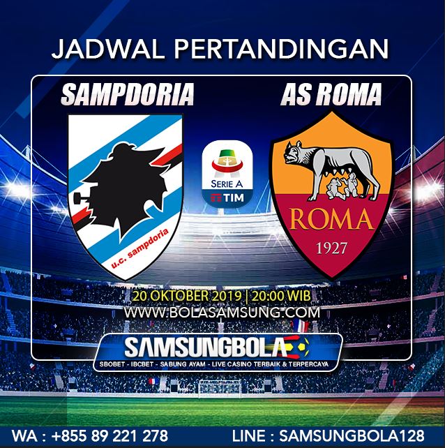 Samsungbola - Prediksi Sampdoria vs AS Roma 20 Oktober 2019 Pada hari Minggu, 20 Oktober 2019 pukul 20:00 waktu indonesia barat akan di adakan laga pertandingan Liga Italia antara Sampdoria vs AS Roma. Pertandingan ini nantinya akan di laksanakan di Stadion Comunale Luigi Ferraris.