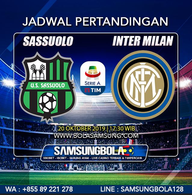 Samsungbola - Prediksi Sassuolo vs Inter Milan 20 Oktober 2019 Pada hari Minggu, 20 Oktober 2019 pukul 17:30 waktu indonesia barat akan di adakan laga pertandingan Liga Italia antara Sassuolo vs Inter Milan. Pertandingan ini nantinya akan di laksanakan di Stadion Citta del Tricolore.