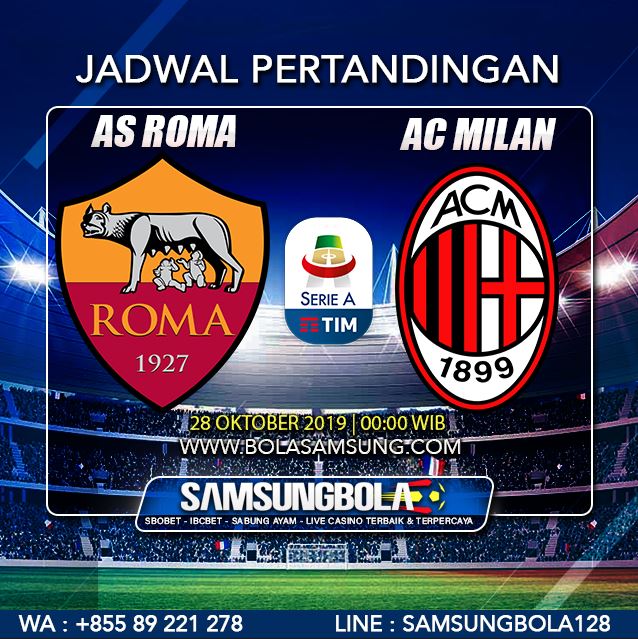 Samsungbola - Prediksi AS Roma vs AC Milan 28 Oktober 2019 Pada hari Senin, 28 Oktober 2019 pukul 00:00 waktu indonesia barat akan di adakan laga pertandingan Liga Italia antara AS Roma vs AC Milan. Pertandingan ini nantinya akan di laksanakan di Stadion Olimpico.