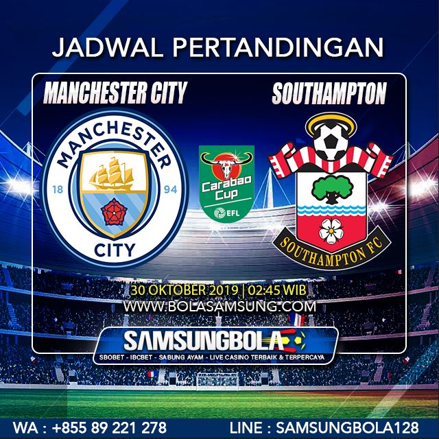 Samsungbola - Prediksi Manchester City vs Southampton 30 Oktober 2019 Pada hari Rabu, 30 Oktober 2019 pukul 02:45 waktu indonesia barat akan di adakan laga pertandingan Liga Carabao Cup antara Manchester City vs Southampton. Pertandingan ini nantinya akan di laksanakan di Stadion Etihad.