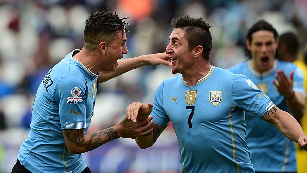 Bermain di Estadio Regional de Antofagasta, Minggu (14/6/2015) dinihari WIB, Uruguay menutup pertandingan dengan kemenangan 1-0 atas Jamaika. Satu-satunya gol diciptakan Cristian Rodriguez di babak kedua.
